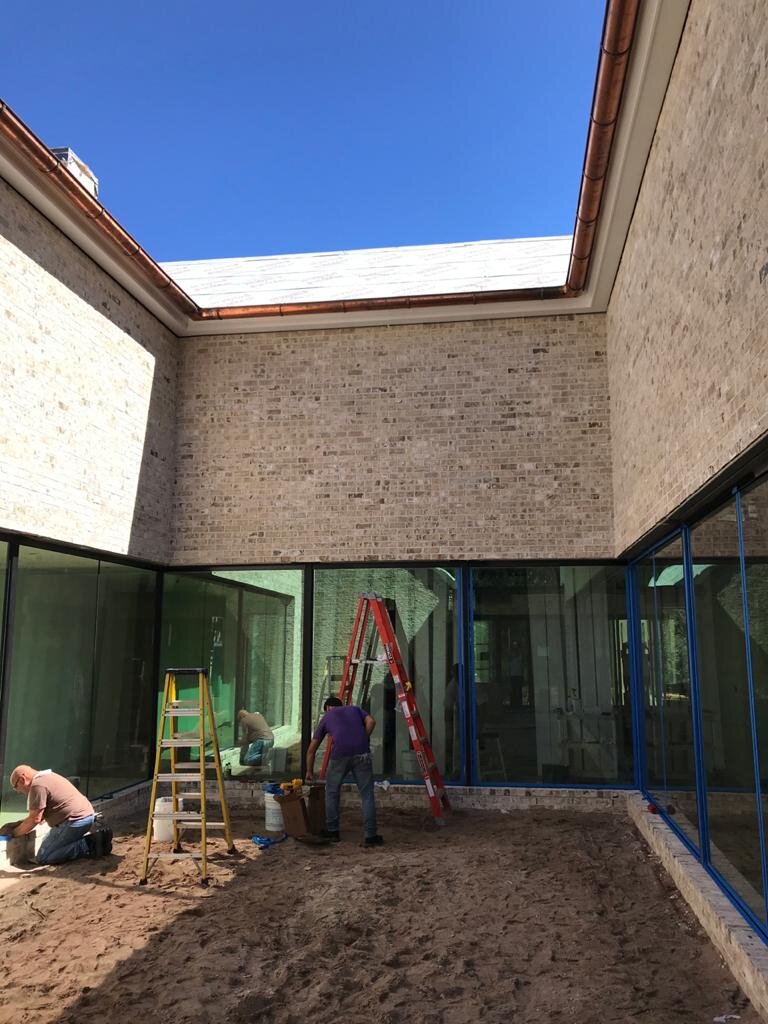 Surrounded by live oak trees, farm fields, wetlands and a pond, the residence and collection is deployed as a pattern of tall volumes and courts that configure new relationships and spaces on the site. The site location and architectural language were highly restricted by a series of neo-historicist local codes and by-laws that largely neglected environmental factors. These codes were also unaware of the nuances and social justice connotations of the proposed historical models. In this context, the project pushed for a revision of historical requirements in favor of muted volumes which both performed environmentally and reflected on the many histories of the land. These revisions were very much in line with the collection housed: A personally curated wide and diverse ranging collection of artifacts.